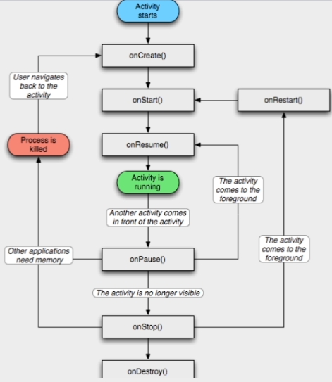 onCreate:創建時調用,或者程序在暫停、停止狀態下被殺死之後重新打開時也會調用