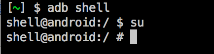後綴變為“#”,成功獲取root權限,這時可以進入應用程序的私有目錄,