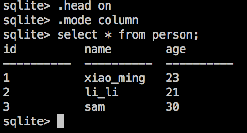 下面時一些基本的sqlite命令