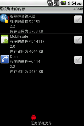 注:殺死全部進程實際上殺死的是用戶的所有進程,系統進程是無法殺死的,所以這裡要獲取到用戶的所有的進程。