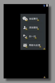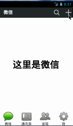 本文要實現微信6.1中點擊頂部菜單欄的“+”號按鈕時,會彈出一個列表框。這裡用的了Activity實現,其實最好的方法可以用ActionBar,不過這貨好像只支持3.0以後的版本。本文的接上文Android仿微信底部菜單欄+頂部菜單欄。