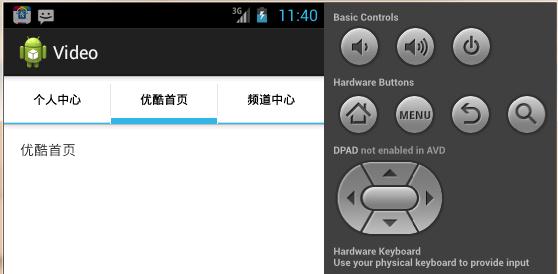 前兩天老師就讓自己寫個視頻播放器客戶端,這個是他上課講的一個小小demo,通過查看安卓API的tabs3,實現仿優酷視頻客戶端的tabhost效果。我的API路徑是D:\android\sdk\samples\android-17\ApiDemos\src\com\example\android\apis\view下的Tabs3,下面是實現效果: