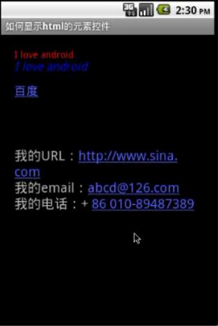 如圖,顯示html的元素控件,點擊連接實現上網,發email,撥號