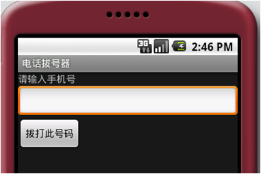 實現原理:用戶輸入電話號碼,當點擊撥打的時候,由監聽對象捕獲,監聽對象通過文本控件獲取到用戶輸入的電話號碼,由於系統已經實現了電話撥號功能,所以我們只需要調用這個功能就可以了。