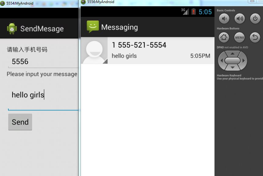 本文實例實現了兩個模擬器之間短信的發送功能,分享給大家供大家參考,具體實現內容如下