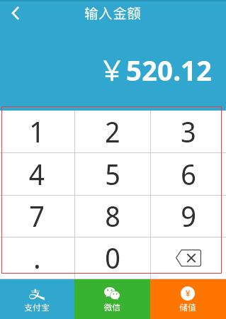 這裡最上面的titlebar高度固定,下面輸入的金額高度也固定(當然也可以自適應),主要是中間的數字鍵盤,高度和寬度需要自適應。先來張效果圖: