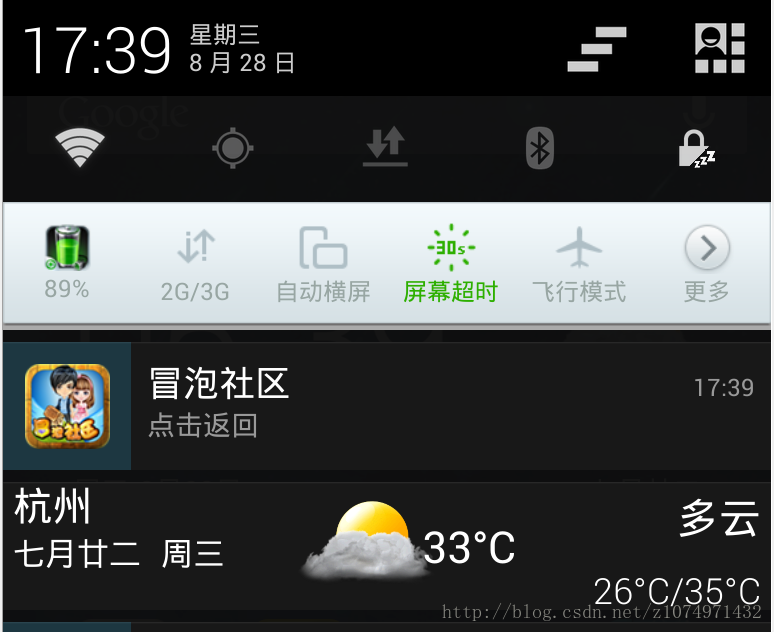 此外這裡還有一個小細節,就是你 new Notifycation() 是傳進去的圖標會作為狀態欄的小圖標,小圖標尺寸在 hdpi 下面放 32x32 的就可以