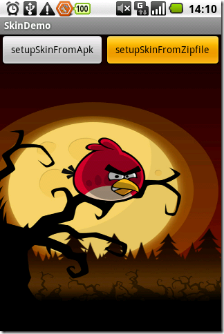4. 軟件中優先讀取”/data/data/[package name]/skin/”路徑下的資源。如果沒有則使用apk中的資源。