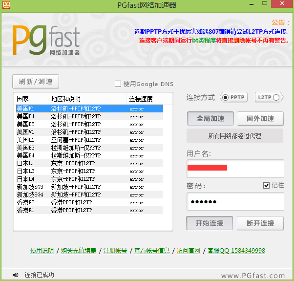 這種是采用在線安裝ADT插件的方式,由於天朝對Google一直都牆著,所以要想使用這種方式在線安裝ADT插件,那麼需要使用VPN代理服務器去訪問ADT插件的網站,我采用的是PGFast,如下:
