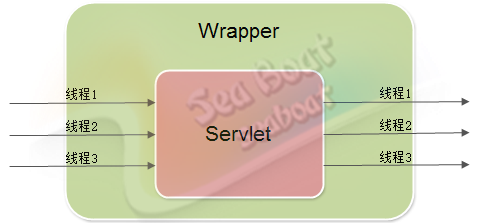 Servlet在不實現SingleThreadModel的情況下運行時是以單個實例模式,如下圖,這種情況下,Wrapper容器只會通過反射實例化一個Servlet對象,對
