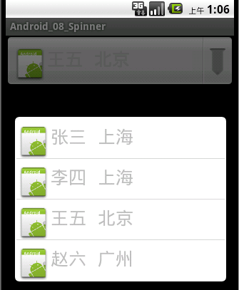 下面是關於Spinner的點擊事件(效果圖如上圖):