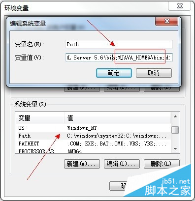 PATH屬性已存在,可直接編輯。作用是用於配置路徑,簡化命令的輸入,其值為:%JAVA_HOME%\bin。