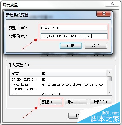 用於編譯時JAVA類的路徑,注意這裡設置的是兩個值,(.;)表示的是JVM先搜索當前目錄。其值為:.;%JAVA_HOME%\lib\tools.jar。