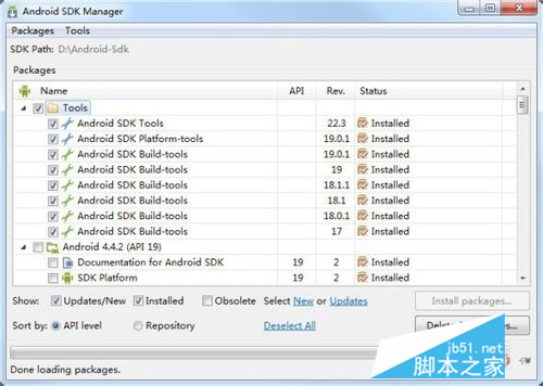 3、去到安裝目錄運行SDK Manager,一開始什麼平台和工具也沒有,需要下載回來。公司內網的話需要使用代理來下載。