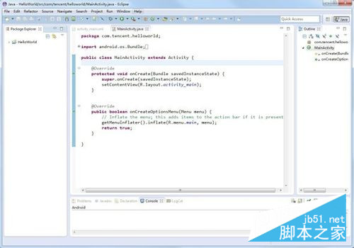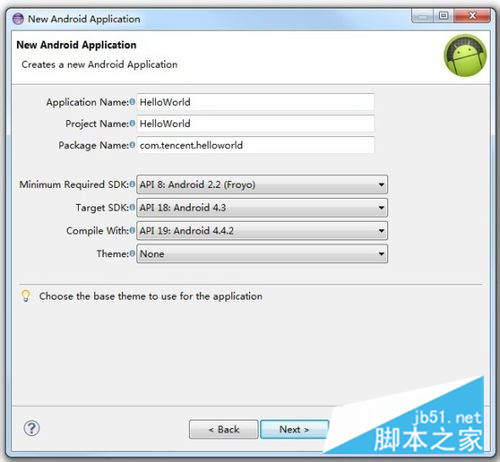 Package Name (存放Java類的包名稱,其實質是存放的文件夾路徑,.號為文件分隔符,我們編寫的Java文件都會放在項目的src目錄下,如com.tencent.helloworld表示類放在src/com/tencent/helloworld文件夾中)
