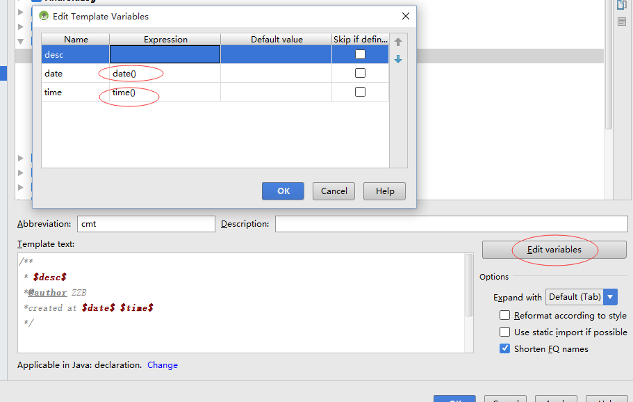 7.注意到,我的Template text有定義了三個變量 desc,date,time,後面兩個我要生成日期和時間,所以我們要編輯這兩個變量