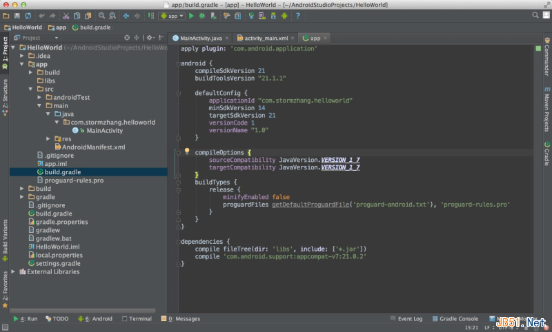 可以看到和Eclipse的目錄結構有很大區別,Studio一個窗口只能有一個項目,而Eclipse則可以同時存在很多項目,如果你看著不習慣可以點擊左上角進行切換