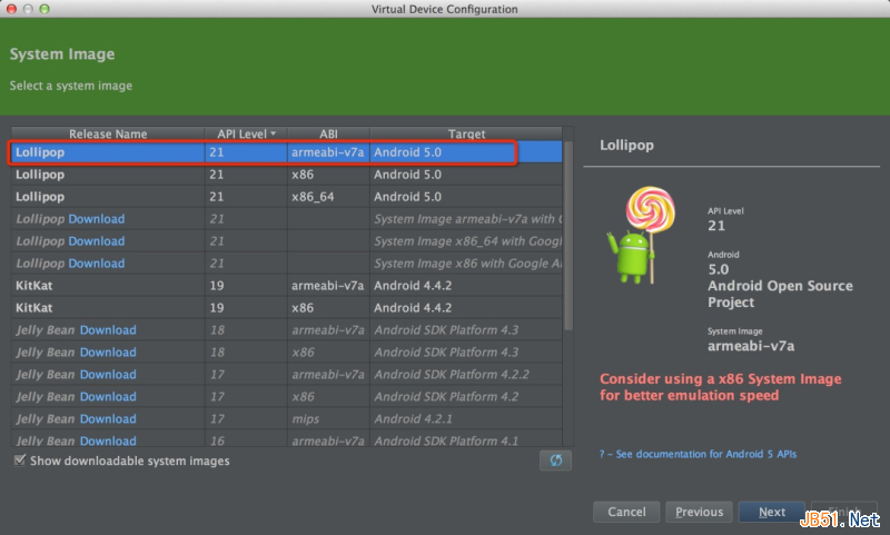 這裡選擇一個系統版本,這裡以5.0為例,然後Next