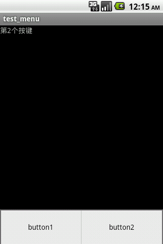 android應用程序可以通過menu按鍵彈出菜單,現在通過menu按鍵彈出一個擁有兩個選項的菜單.點擊第一個按鍵,文本框會顯示"第1個按鍵",點擊第二個按鍵,文本框會顯示"第2個按鍵"