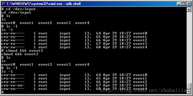 設備文件eventX默認是被設置為660這個權限的(Owner和同組成員有讀寫,而owner是root)。為了向這個設備注入事件,你必須讓它能可寫。所以請先做以下動作: