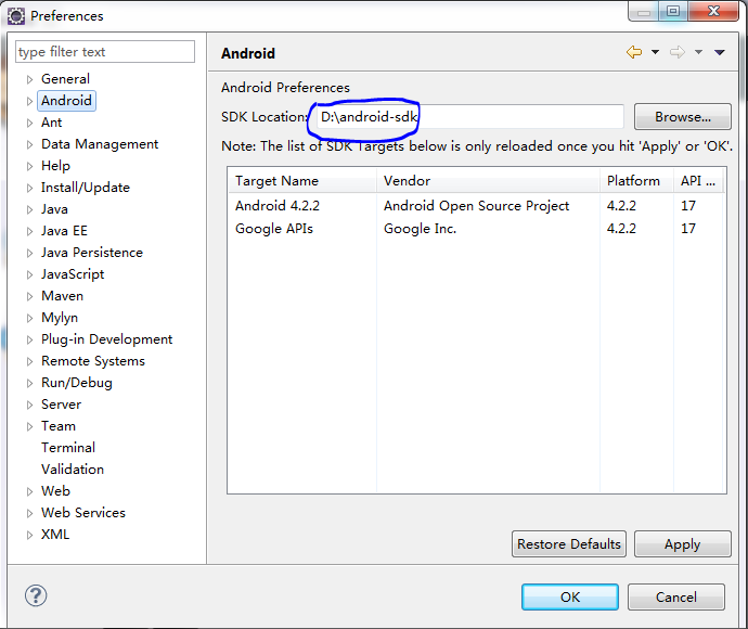 3 運行Eclipse3.1 打開Eclipse配置Android SDK位置