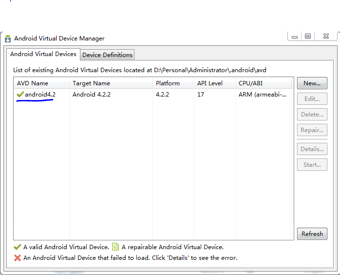 :左邊的就是SDK Manager,右邊的是Android虛擬設置管理器,即AVD(Android Virtual Device)Manager。我們馬上就要操作它。