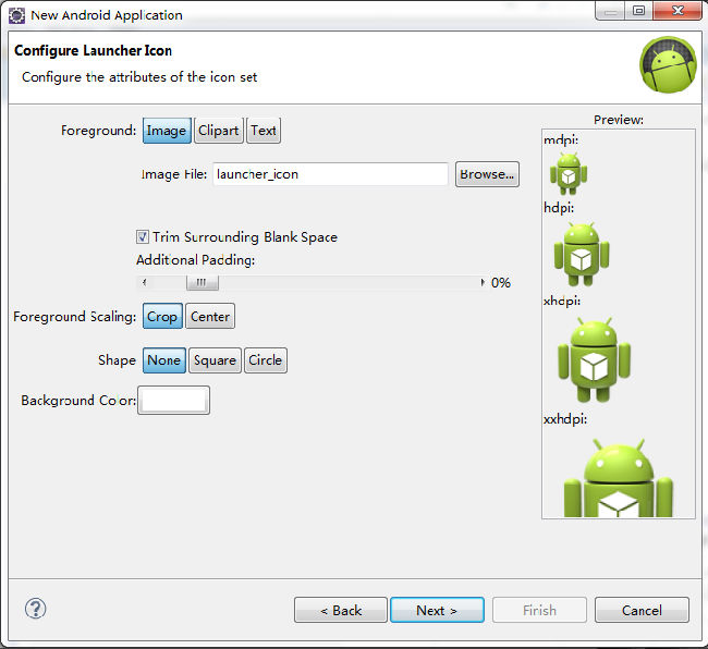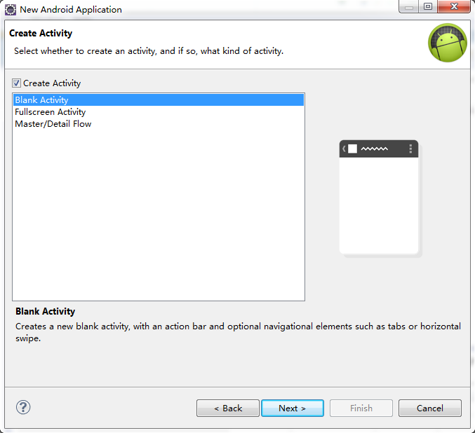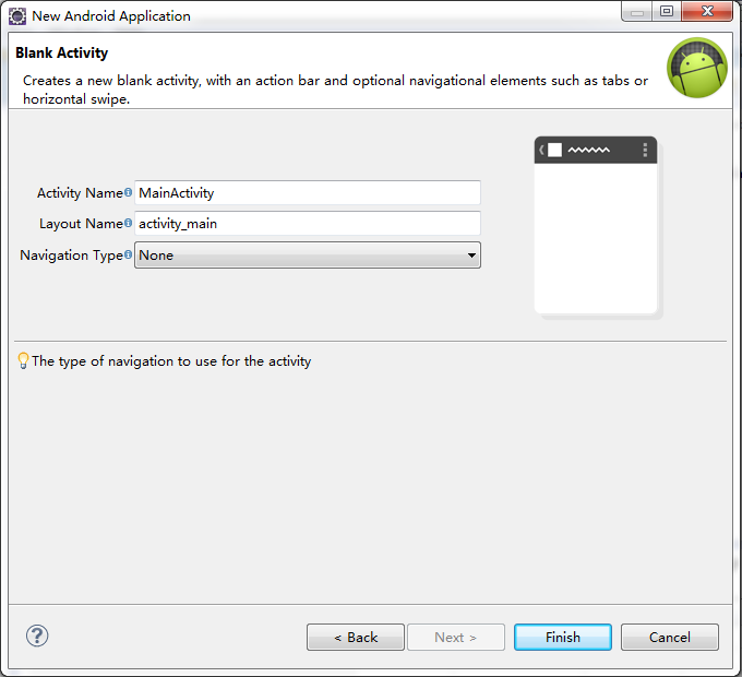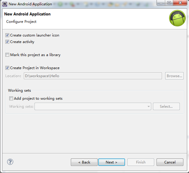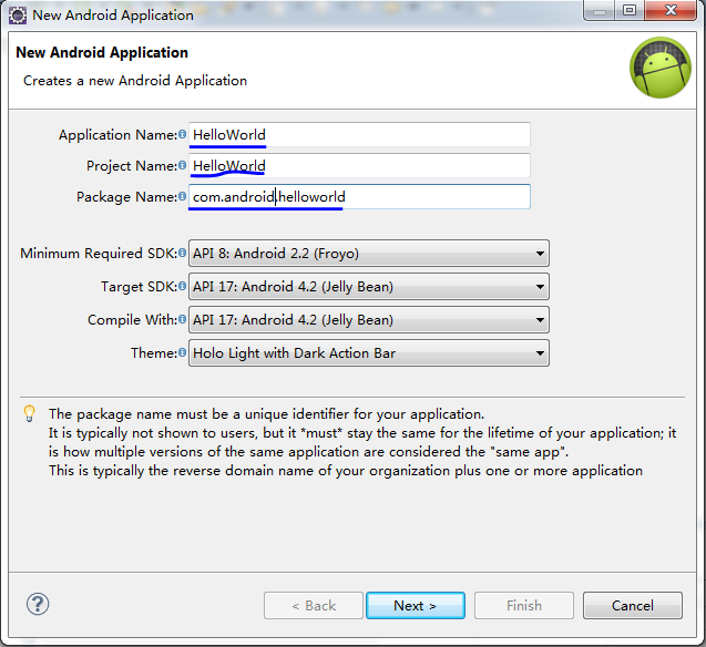 在eclipse中file菜單中選中new--->Android Application Program-->Next --&