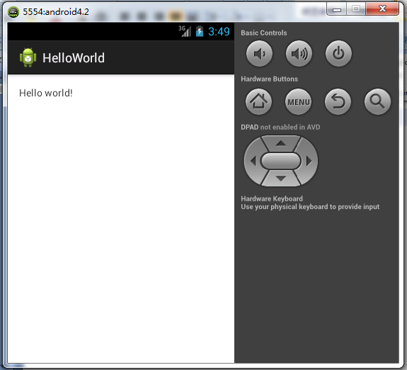 Hello World!雖然還沒有編寫一句代碼,但是經典的hello world界面出現了。看到這個界面後,你的android編碼之旅就正式啟航了。