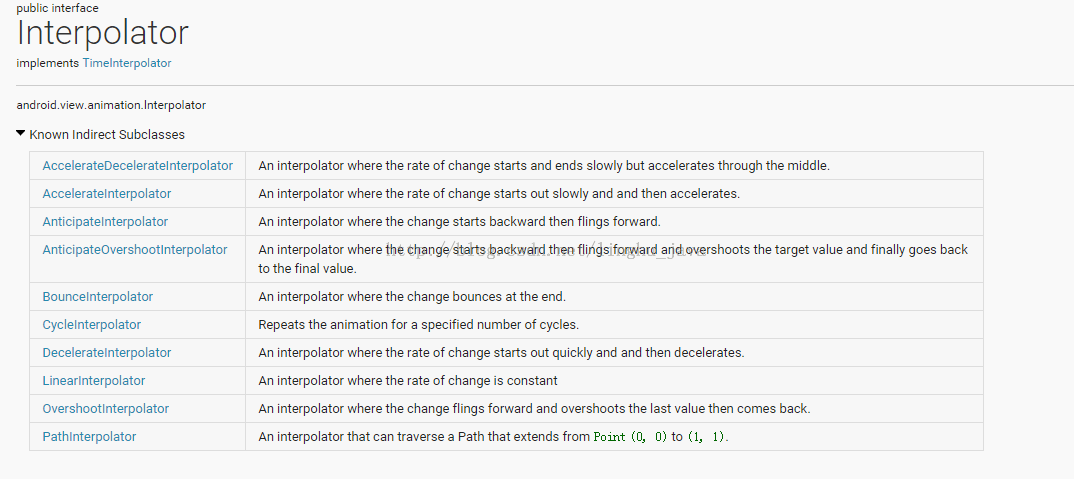 備注:Scale應該比Translate先添加到Set裡面 Interpolator 時間插值類,定義動畫變換的速度。能夠實現alpha/scale/trans