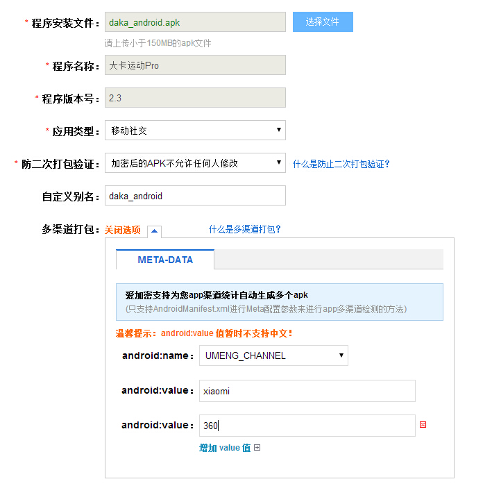 如果你的項目裡面包含了百度統計、友盟統計等功能,那麼肯定需要了解不同應用商店的下載量,所以生成渠道包就很重要。這些平台都可以幫助生成多個去到apk