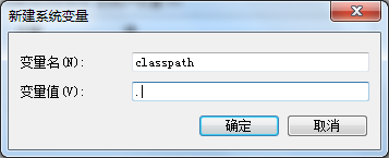 classpath:計算機→屬性→高級系統設置→高級→環境變量→新建系統變量,變量值為.