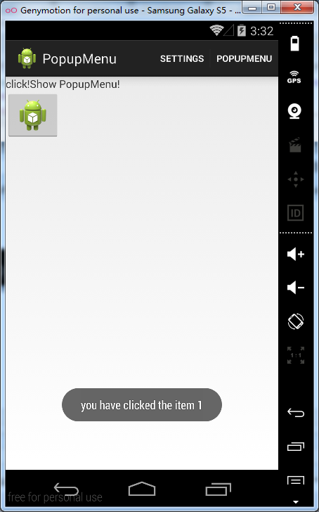 Toast.makeText(this, "you have clicked the item 1", Toast.LENGTH_LONG).show();