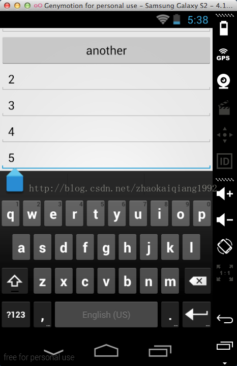如果設置為這個屬性,那麼Activity的屏幕大小並不會調整來保證軟鍵盤的空間,而是采取了另外一種策略,系統會通過布局的移動,來保證用戶要進行輸入的輸入框肯定在用戶的失業范圍裡面,從而讓用戶可以看到自己輸入的內容。對於沒有滾動控件的布局來說,這個其實就是默認的設置,如果我們選擇的位置偏下,上面的標題欄和部分控件會被頂上去。但是對於有滾動控件的布局來說,則不太一樣,我們看下面的效果圖。