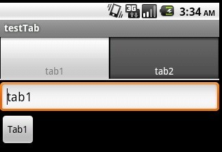 <Button android:layout_width="wrap_content" android:layout_height="wrap_content" android:id="@+id/btnTab2" android:text="Tab2"></Button></LinearLayout>