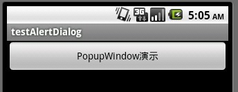 <?xml version="1.0" encoding="utf-8"?> <LinearLayout xmlns:android="http://schemas.android.com/apk/res/android" android:orientation="vertical" android:layout_width="fill_parent" android:layout_height="fill_parent" > <Button android:id="@+id/Button01" android:layout_height="wrap_content" android:layout_width="fill_parent" android:text="PopupWindow演示"></Button> </LinearLayout>