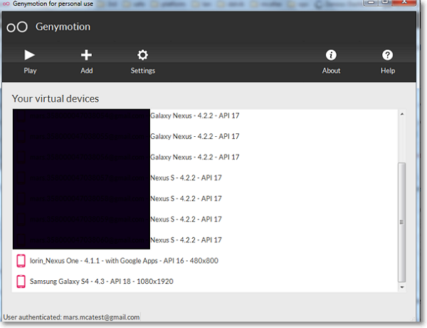 Genymotion Emulator:如果你已經對原生Android Emulator忍無可忍,如果你又有幸看到這個篇文章,你會發現原來Android Emulator也會這麼快,原來Android Emulator的世界也可以這麼美好,Genymotion是一套完整的工具,它提供了Android虛擬環境,它簡直就是開發者、測試人員、推銷者甚至是游戲玩家的福音。我曾在神器中快速介紹過Android 超快模擬器Genymotion,秒殺真機,今天正式將其作為我們的開發環境的專用Emulator。