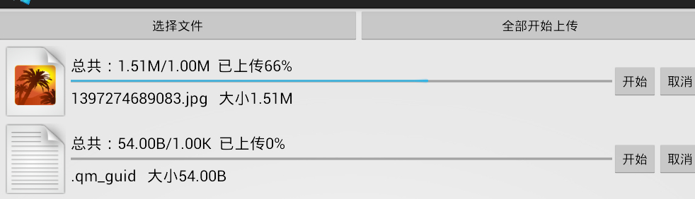 主要思路是調用系統文件管理器或者其他媒體采集資源來獲取要上傳的文件,然後將文件的上傳進度實時展示到進度條中。