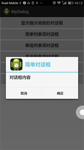 app中肯定是少不了與用戶交互的各種dialog,下面給大家介紹幾種提示框的提示。一般創建一個對話框需要經過以下幾步: 1、創建AlertDialog.Builder對