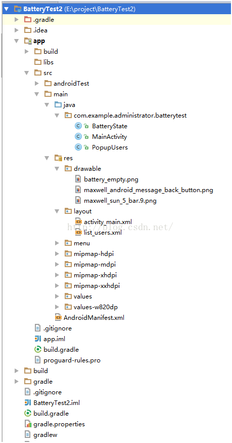 下面介紹了Android實現顯示電量的控件代碼,具體代碼如下:1、目錄結構,本人是使用安卓死丟丟。2、運行界面,輸入框中輸入數值,點擊刷新,會再電池中顯示出相應的電量3、