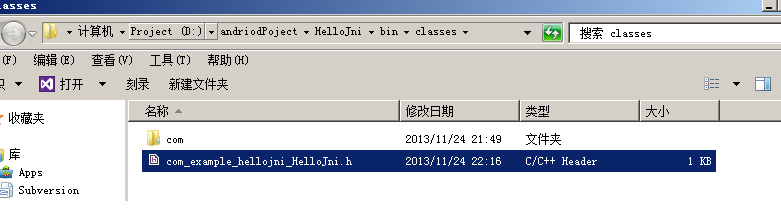 這個就是上面的HelloJni 類生成的對應的c++的函數原型,我們接下來要實現這個函數。將這個頭文件copy到jni下: