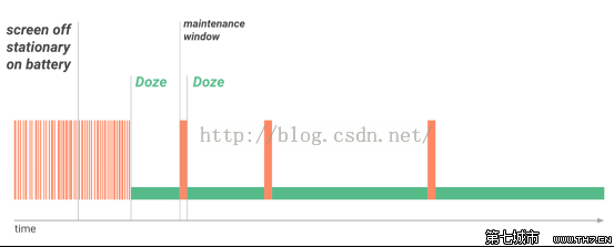 Doze模式是Android6.0上新出的一種模式,是一種全新的、低能耗的狀態,在後台只有部分任務允許運行,其他都被強制停止。當用戶一段時間沒有使用手機的時候,Doze模