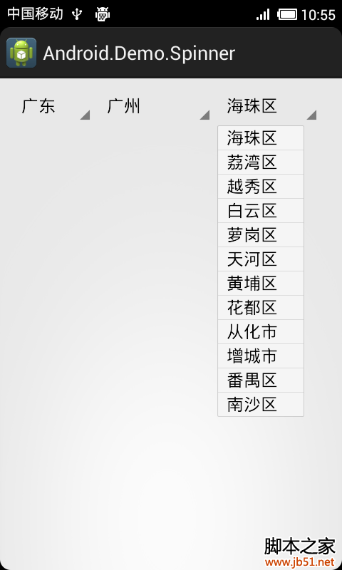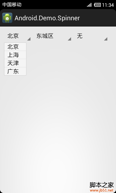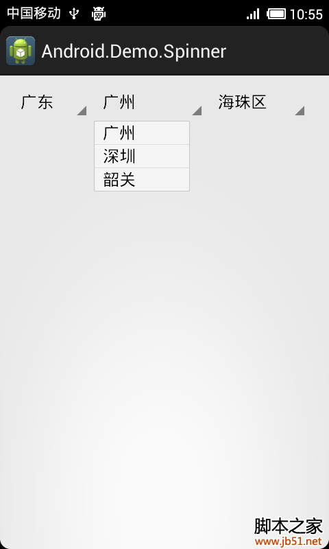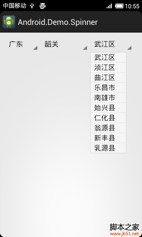 provinceSpinner.setSelection(3,true); //設置默認選中項,此處為默認選中第4個值