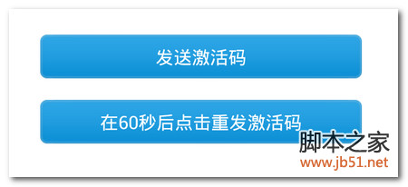 同樣,為了防止用戶惡意的頻繁發送激活碼,應用中需要對用戶發送激活碼的時間間隔進行限制,這時就需要用到倒計時器了,大概流程是這樣的:頁面初始化的時候,按鈕為可點擊狀態,用戶在點擊“發送激活碼”後按鈕變為不可點擊狀態,同時按鈕上的文字變為倒計時狀態,倒計時結束後,按鈕變為可點擊狀態,文字變為“發送激活碼”。具體邏輯看下面的代碼: