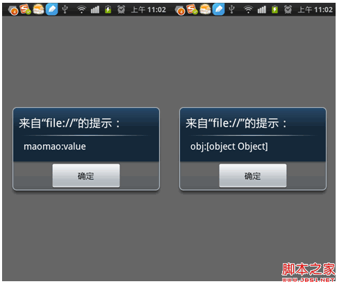 與此同時,js主動調用android的對象方式,android也無法返回給js一個jsonobject,需要js做一下轉換,例如: