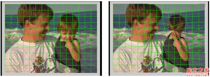 試想,我們讓這個格子(mesh)不均勻分布,那麼繪制出來的圖片就會變形,請看下圖所示: