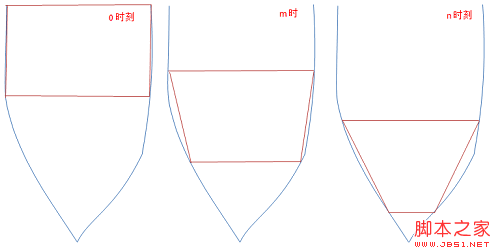 2,第0時間,我們要的形狀是一個矩形,第1時刻可能是梯形,第n時間可能是一個三角形。下圖說明了動畫過程中圖片的變化。