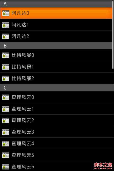 Android自帶的通訊錄中的聯系人是按照拼音首字母(A,B,C,D......)分組分類的,效果如下: