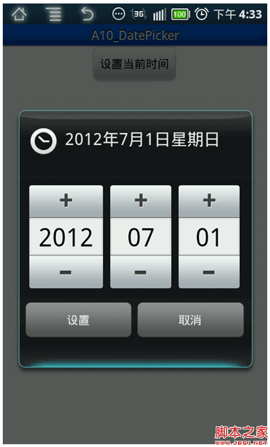 2.java代碼中設置DatePicker,使用OnDateSetListener監聽器接口監聽對話框的動作。