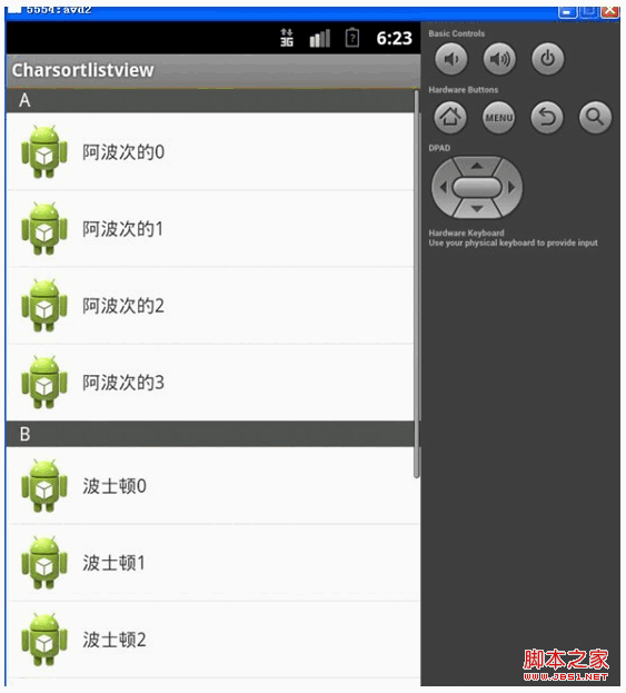 邏輯解析: 首先上面這個圖是最終的實現效果了,有點像我們的通訊錄聯系人的排版方式,說一下layout的布局吧。很簡單,其實就是一個ListView組件。但是這個ListView組件用的Adapter有一點不同。我們自己定義了一個adapter並且通過getview方法對每一個條目進行了編輯和排版。然後最後將我們自定義的Adapter放入到了我們的ListView中以實現展示了這種效果下面我給出這個實現的重要代碼片段,然後加以分析