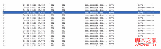 上面的方法執行順序只是大概邏輯,這其中還有判斷和方法中調用其他方法,所以方法的調用是多次的,大家湊合看一下方法的大體功能吧,需要注意的是我們重寫的onTouchEvent是要一直不斷的監聽我們的按鍵的,如果為Move的話也就是會一直不斷的去調用onDrag方法去實現滾動的動作,在此我做了測試,給大家看一下打印的日志如下: